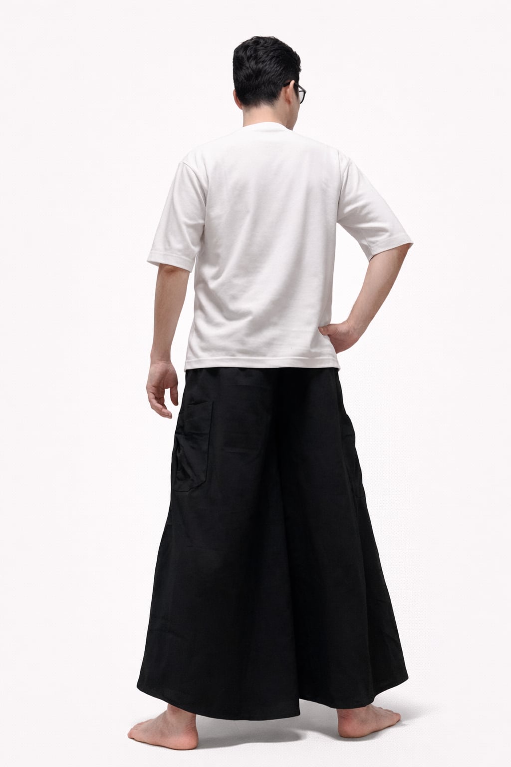 フリーサイズで男女兼用。裾がワイドなデザインは、リラックスした着心地が魅力です!スタイルにこだわるあなたにぴったりのアイテムです。