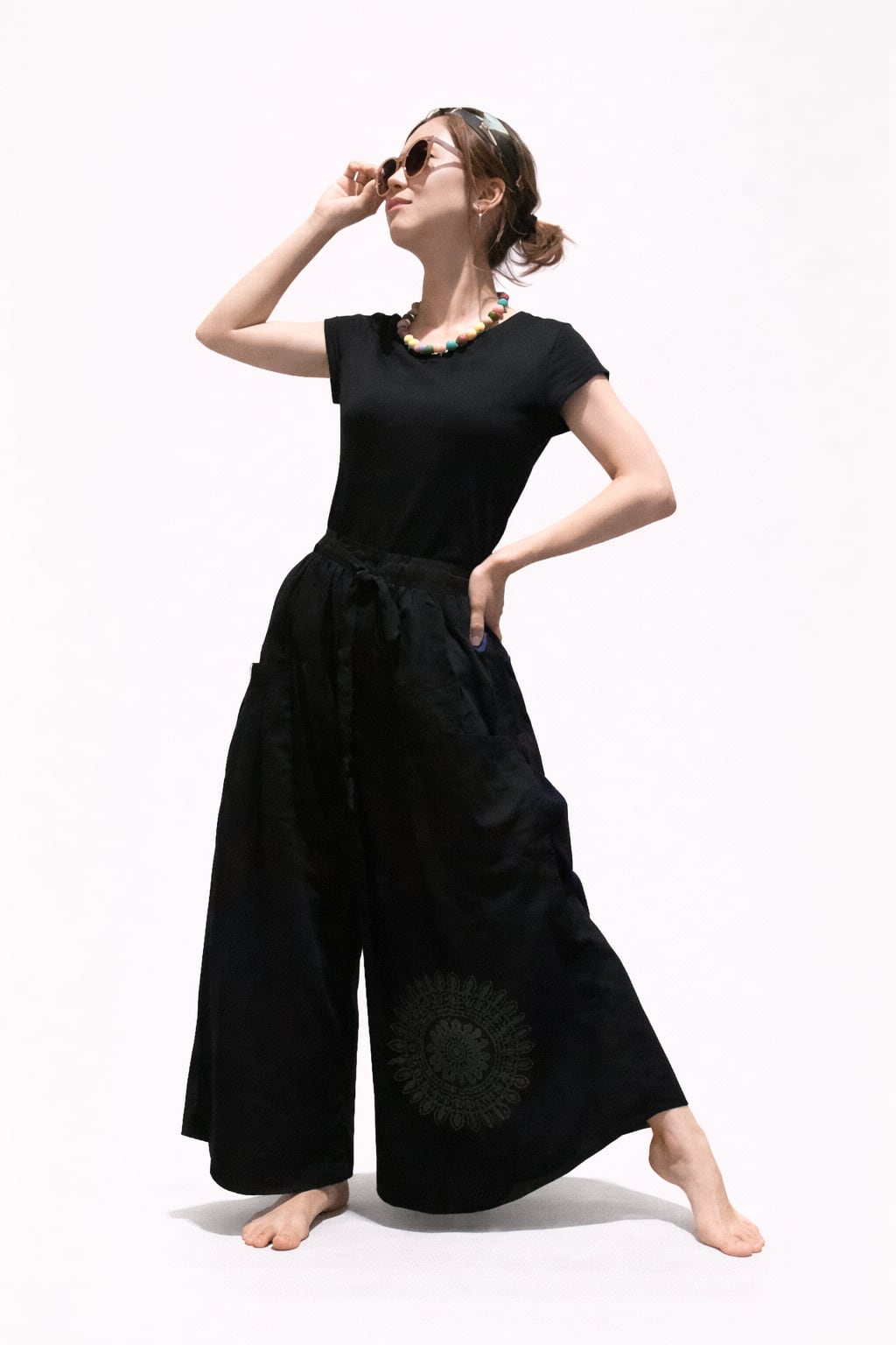 タイパンツ裾ワイド 黒は、快適さとデザイン性を両立させた一着です。高品質な素材を使用し、動きやすさを追求。裾が広がったシルエットが足元をスッキリと見せ、カジュアルながらも洗練された印象を与えます。また、シンプルな黒は様々なトップスと合わせやすく、コーディネートの幅を広げてくれるアイテムです。通気性に優れた素材を使用しているため、季節を問わず快適に着用でき、ビーチやお出かけ、リラックスタイムにも最適です。