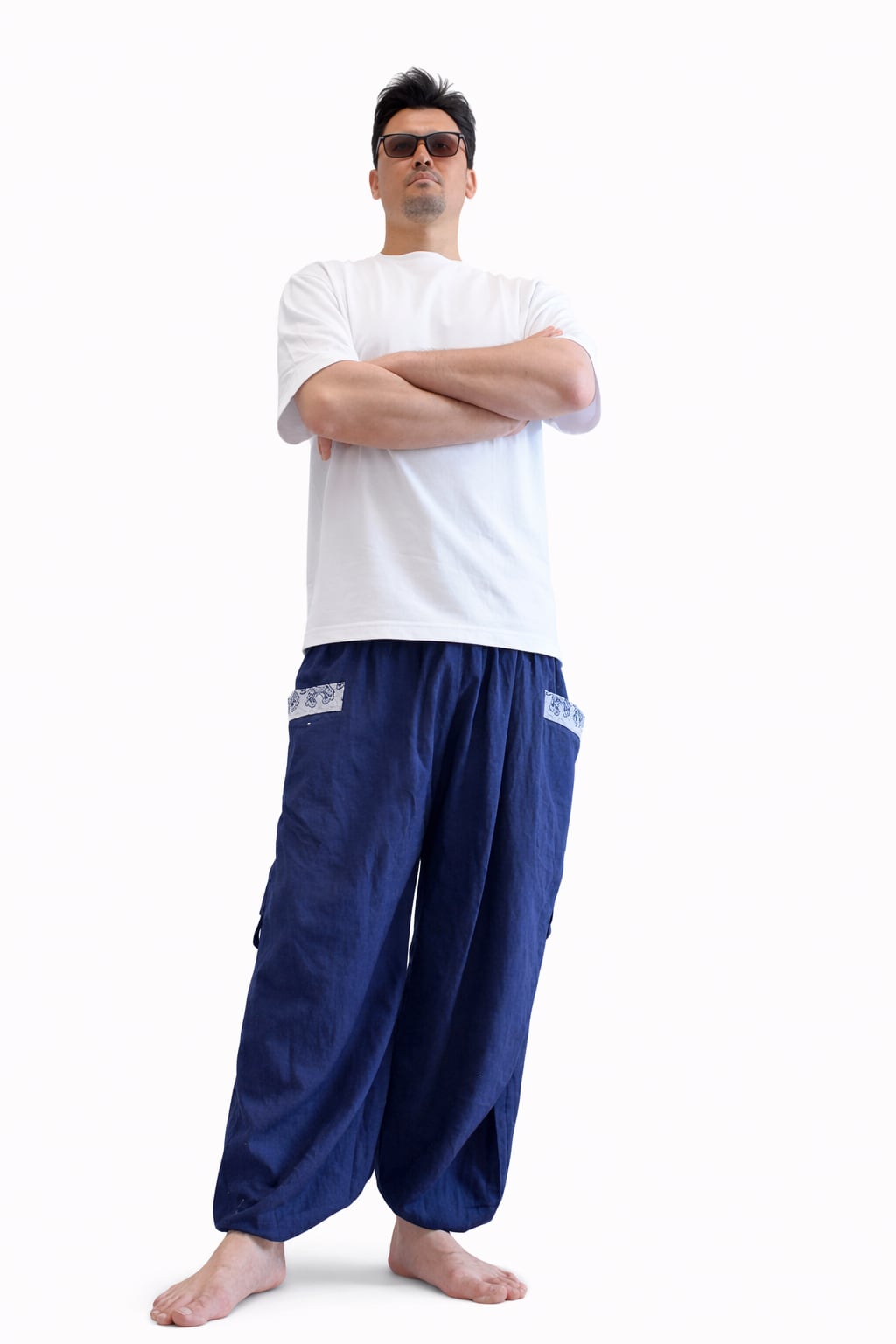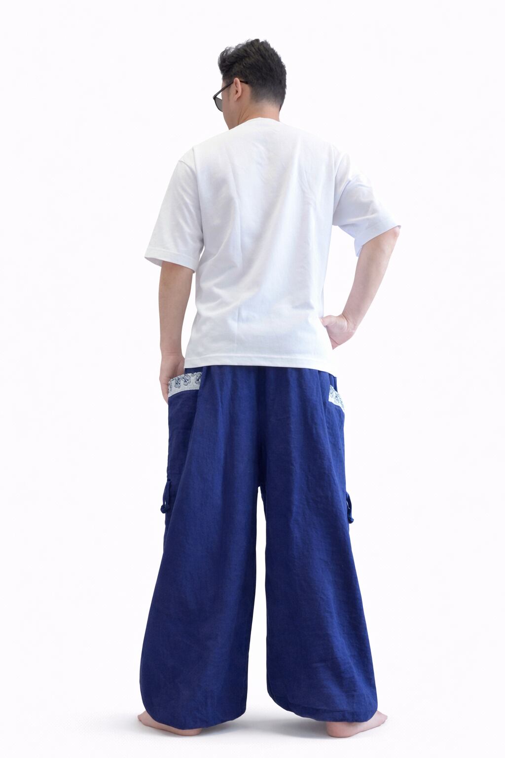 フリーサイズで男女兼用。深みのある紺色が魅力のワイドタイパンツは、カジュアルながらも洗練された印象を与えます!ゆったりとしたシルエットが、リラックスしたスタイルを演出するのにぴったりです。